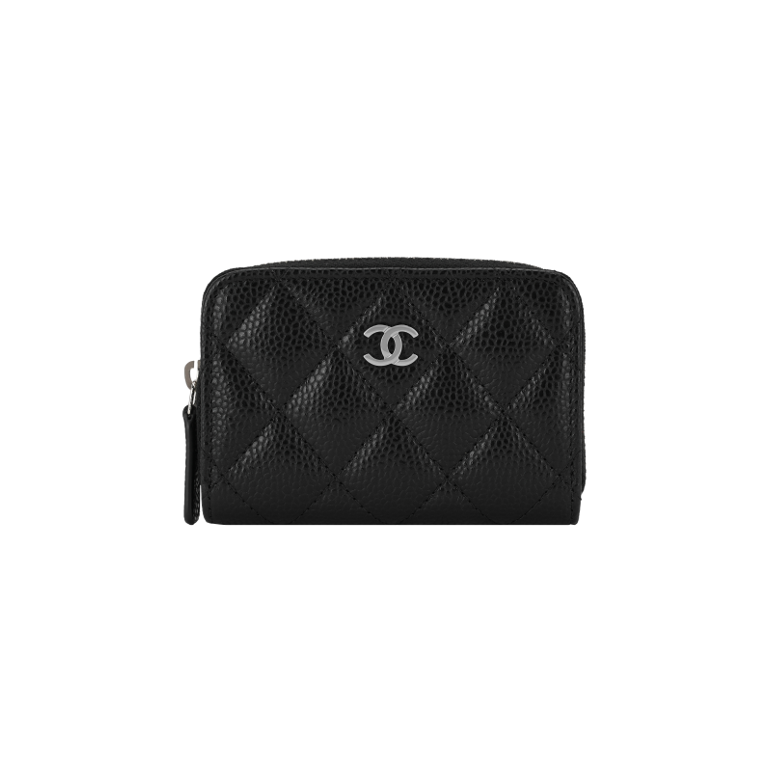 클래식 지퍼 동전 지갑 그레인드 카프스킨 & 실버 메탈 블랙 샤O
