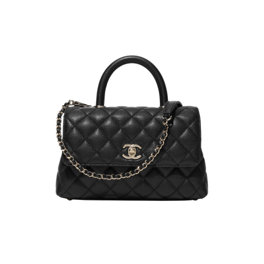 핸들 장식의 스몰 플랩백 그레인드 카프스킨 & 골드 메탈 블랙 샤O