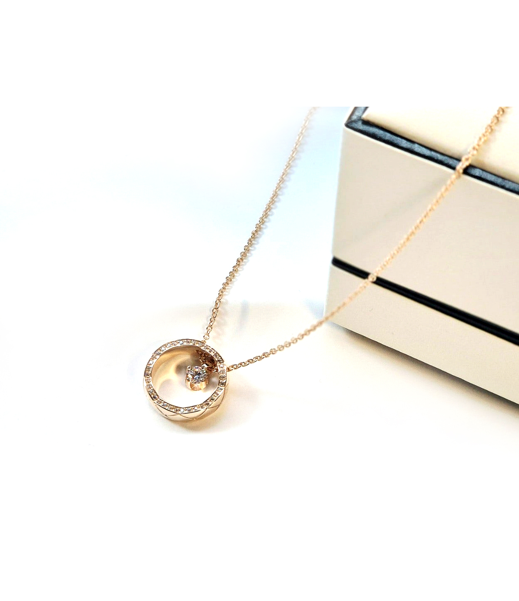 퀼팅 모티프 O모양 다이아목걸이 샤O