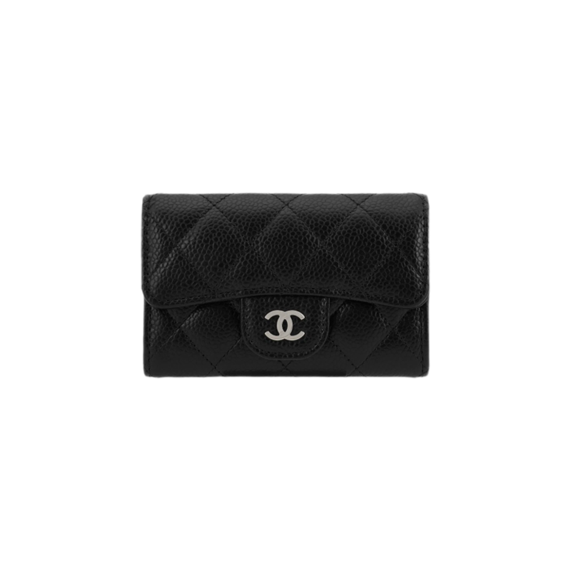 클래식 카드 홀더 그레인드 카프스킨 & 실버 메탈 블랙 샤O