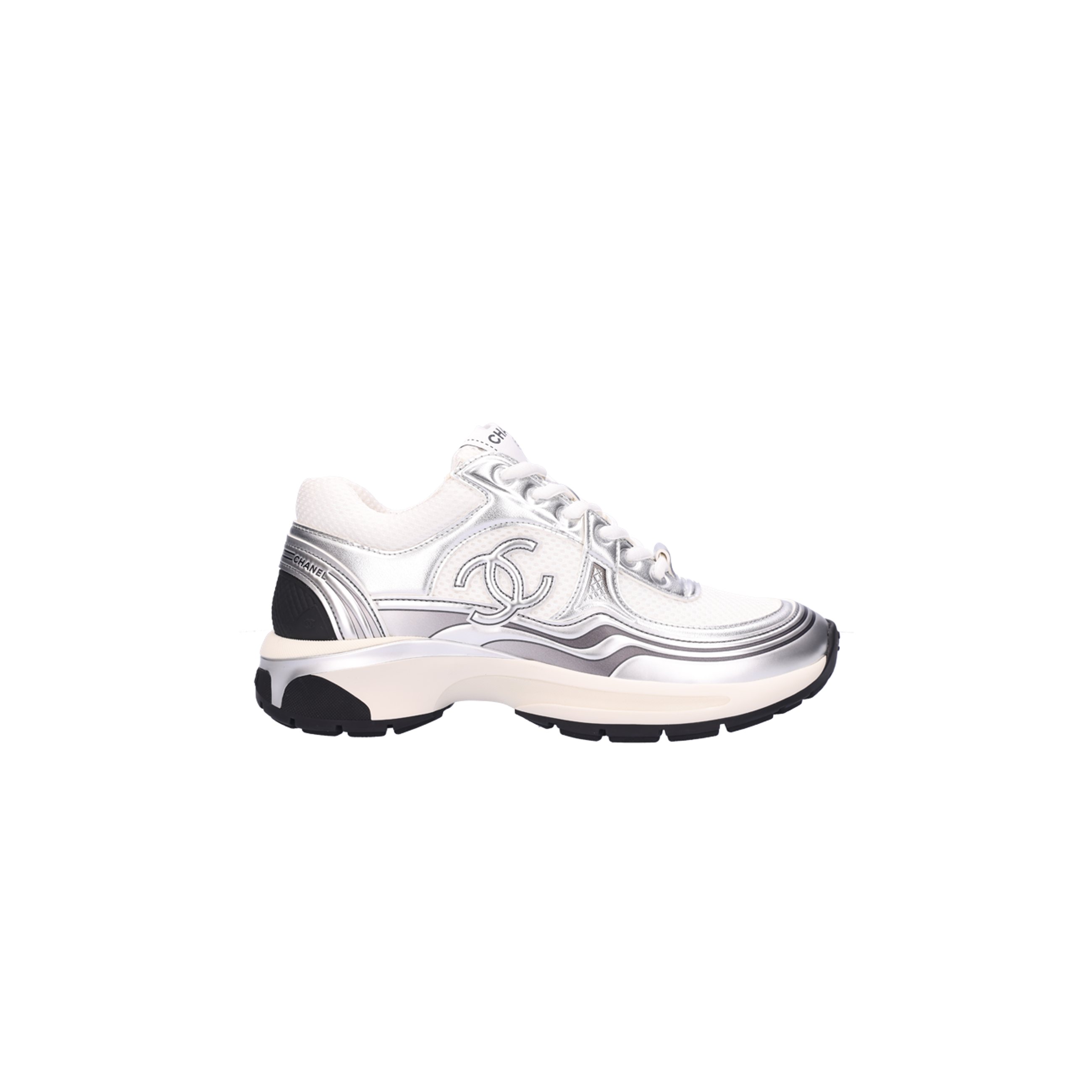 스니커즈 패브릭 라미네이티드 화이트 실버 샤O