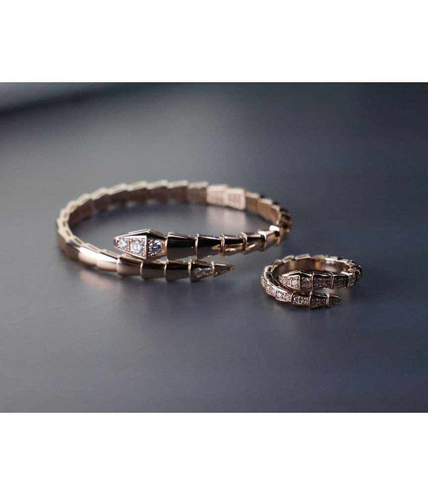 카리스마 넘치는 매력이 조화를 이루어 특유의 분위기를 자아내는 바이퍼 반지와 팔찌는 다이아몬드가 파베 세팅되어 있으며, 자신감과 강인한 매력을 담은 주얼리입니다. 손쉽게 믹스 매치가 가능한 디자인은 다양한 스타일링을 제시하며 컬렉션의 다채로운 감각을 표현합니다.